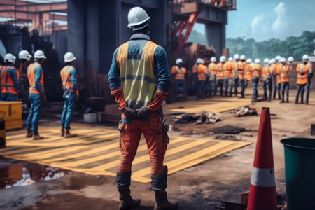 朝礼参加、安全ミーティング、工事の打合せ後、資機材を設置します。